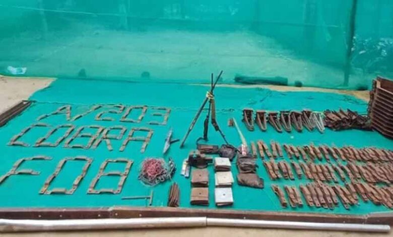 बरामदगी के दौरान जवानों को नक्सलियों के डंप से भारी मात्रा में हथियार और विस्फोटक सामग्री मिली है. इसमें कंट्रीमेड रायफल, बीजीएल लांचर और उसका बैरल, यूएवी नेत्रा का टूटा हुआ प्रोपेलर, इलेक्ट्रिक होल्डर वेल्डिंग, बैंच वाइस और स्टील पाइप शामिल है. इसके अलावा 7 लोहे के छड़, करीब 2 किलो वजनी 45 लोहे के बेस प्लेट, 8 किलो के 47 पोल एंगलर और लगभग 480 भारी-भरकम आयरन क्लैंप बरामद किए गए. वहीं 35 ग्राउंड सपोर्टर, 1 किलो, 18 और 12 इंच के दर्जनों क्लैंप, एक टी-टाइप क्लैंप, काला वर्दी, एम्युनेशन पाउच और टूटी हुई इन्वर्टर बैटरी भी मिली. मौके से करीब 20 मीटर इलेक्ट्रिक वायर और एक इलेक्ट्रिकल एक्सटेंशन बोर्ड भी जब्त किया गया.