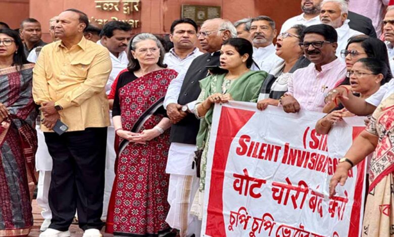 चुनावों में कथित धांधली, वोट चोरी और एसआईआर प्रक्रिया पर राजनीतिक हंगामा बरकरार है। इसी क्रम में मंगलवार को विपक्ष के सदस्यों ने संसद के बाहर विरोध प्रदर्शन किया, जिसमें सोनिया गांधी और मल्लिकार्जुन खड़गे समेत 'इंडिया' ब्लॉक के लगभग सभी सदस्यों ने हिस्सा लिया। विपक्ष '124 साल की मिंता देवी' की टी-शर्ट पहनकर आया, जिनका कथित तौर पर फर्स्ट वोटर में नाम दर्ज है। विपक्ष का आरोप है कि भाजपा और चुनाव आयोग मिलकर वोट चोरी कर रहे हैं, जनता के अधिकार छीन रहे हैं। एसआईआर पर कांग्रेस सांसद कार्ति पी. चिदंबरम ने समाचार एजेंसी आईएएनएस से बातचीत में कहा, "यह एक बहुत ही गंभीर मुद्दा है। अगर चुनाव आयोग की पूरी बुनियाद ही संदेह के घेरे में है, तो चुनाव नतीजे भी संदिग्ध हैं और लोकतंत्र कमजोर होता है। इस मुद्दे को लगातार उठाया जाना चाहिए क्योंकि यह हमारी चुनावी और लोकतांत्रिक प्रक्रिया की वैधता पर सवाल उठाता है।"