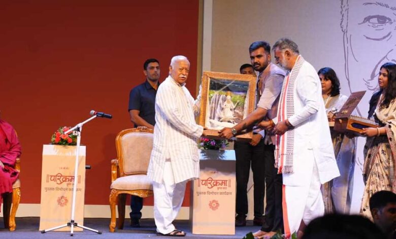 राष्ट्रीय स्वयंसेवक संघ (आरएसएस) के सरसंघचालक डॉ. मोहन भागवत ने मध्य प्रदेश के श्रम, पंचायत और ग्रामीण विकास मंत्री प्रहलाद पटेल की किताब ‘परिक्रमा-कृपा सार’ का विमोचन किया. यह किताब नर्मदा परिक्रमा के अनुभवों पर लिखी गई है. प्रहलाद पटेल ने सूबे की नदियों के उद्गम को बचाने के लिए ‘उद्गम मानस यात्रा’ शुरू की थी. उन्होंने बुक लॉन्चिंग के दौरान कहा कि अगर वो केंद्र से मध्य प्रदेश की राजनीति में न लौटते, तो शायद नदियों के उद्गम को बचाने का संकल्प न ले पाते.