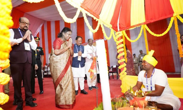 राष्ट्रपति द्रौपदी मुर्मु जनजातीय गौरव दिवस 2025 के उपलक्ष्य में सरगुजा जिले में 20 नवम्बर को पीजी कॉलेज ग्राउण्ड में आयोजित कार्यक्रम में मुख्य अतिथि के रूप में शामिल हुईं। कार्यक्रम में राज्यपाल रमेन डेका, मुख्यमंत्री विष्णुदेव साय, राज्यमंत्री जनजातीय कार्य मंत्रालय भारत सरकार दुर्गा दास उईके, राज्यमंत्री आवास एवं शहरी मंत्रालय भारत सरकार तोखन साहू, आदिम जाति विकास विभाग कृषि विकास एवं किसान कल्याण विभाग मंत्री रामविचार नेताम, प्रभारी मंत्री जिला सरगुजा एवं वित्त वाणिज्यिक कर विभाग मंत्री ओमप्रकाश चौधरी, पर्यटन संस्कृति एवं धर्मस्व विभाग मंत्री राजेश अग्रवाल, वन एवं जलवायु परिवर्तन परिवहन सहकारिता एवं संसदीय कार्य मंत्री केदार कश्यप, लोक स्वास्थ्य और परिवार कल्याण चिकित्सा शिक्षा पिछड़ा वर्ग एवं अल्पसंख्यक विकास 20 सूत्रीय कार्यक्रम क्रियान्वयन मंत्री श्याम बिहारी जायसवाल, महिला एवं बाल विकास समाज कल्याण विभाग मंत्री लक्ष्मी राजवाड़े, सरगुजा सांसद चिंतामणी महाराज, उत्तर रायपुर विधायक पुरंदर मिश्रा, जगदलपुर विधायक किरण सिंह देव, महापौर अम्बिकापुर मंजुषा भगत भी उपस्थित रहे।