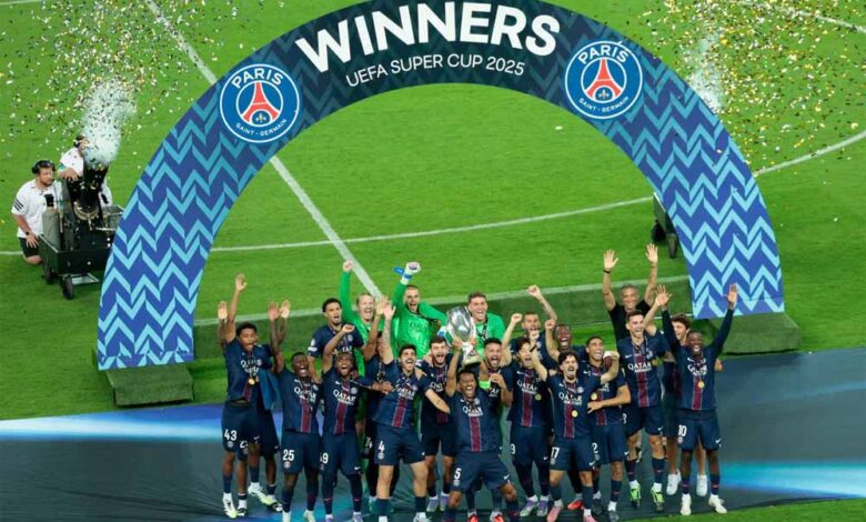 चैंपियंस लीग के चैंपियन पेरिस सेंट जर्मेन (पीएसजी) ने अपना स्वप्निल अभियान जारी रखा है। साल 2025 में पीएसजी का दबदबा फुटबॉल में कायम है। यूईएफए सुपर कप के फाइनल में बुधवार को पेनल्टी शूटआउट में पीएसजी ने टॉटेनहैम को हराकर खिताबी जीत हासिल की। इसी के साथ फ्रांस के इस फुटबॉल क्लब ने साल 2025 की पांचवीं ट्रॉफी उठाई है।