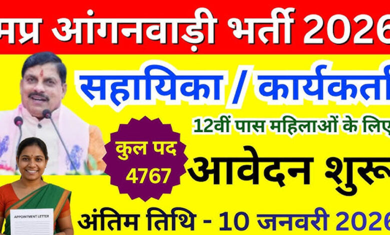आंगनवाड़ी कार्यकर्ता और सहायिकाओं के 4,767 पदों पर भर्ती, 31 दिसंबर 2025 से आवेदन शुरू