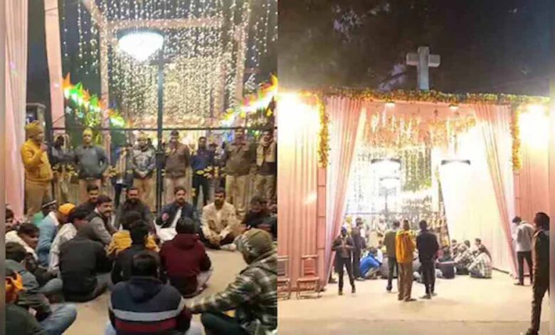 क्रिसमस पर धार्मिक तनाव? चर्च के सामने बजरंग दल ने किया हनुमान चालीसा पाठ, गूंजे जय श्रीराम के नारे