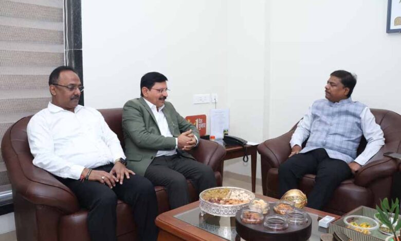 वन एवं जलवायु परिवर्तन मंत्री केदार कश्यप से आज नया रायपुर स्थित उनके निवास, कार्यालय में एसईसीएल के चेयरमैन-कम-मैनेजिंग डायरेक्टर (सीएमडी) हरीश दुहन ने सौजन्य भेंट की। इस दौरान एसईसीएल के डायरेक्टर (एचआर) बिरंची दास भी उपस्थित थे।