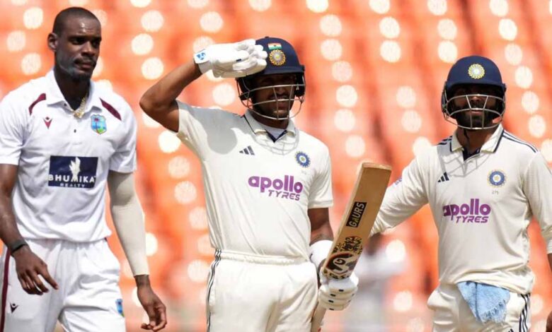 भारत के स्टार ऑलराउंडर रविंद्र जडेजा ने वेस्टइंडीज के खिलाफ पहले टेस्ट मैच में शतक जड़ा है। नरेंद्र मोदी स्टेडियम में खेले जा रहे मुकाबले के दूसरे दिन केएल राहुल और जुरेल ने भी शतक लगाया।