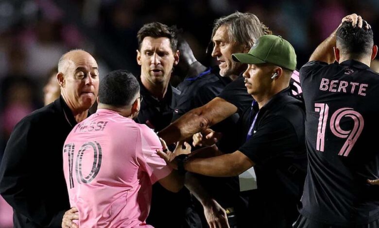 इंटर मियामी और इंडिपेंडिएंट डेल वैले के बीच हुए दोस्ताना मैच के दौरान स्टार फुटबॉलर लियोनेल मेसी पिच पर गिर गए. एक अति उत्साही फैन की वजह से ऐसा हुआ, जो मेसी से मिलने के लिए उनके करीब आ गया. वो शर्टलेस फैन सुरक्षा को तोड़कर सीधे मेसी की ओर दौड़ा और उन्हें गले लगाने की कोशिश की. सुरक्षा गार्ड ने फैन को रोकते समय गलती से मेसी को भी गिरा दिया. हालांकि, मेसी तुरंत उठकर सामान्य स्थिति में लौट आए और कोई चोट नहीं आई.