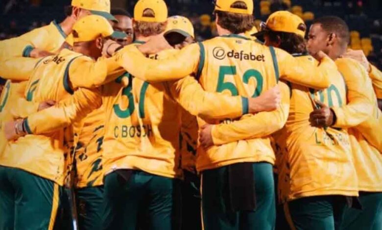 हाई परफॉर्मेंस ओवल में खेले गए ग्रुप-डी के इस मुकाबले में टॉस गंवाकर बल्लेबाजी के लिए उतरी दक्षिण अफ्रीकी टीम ने निर्धारित ओवरों में 5 विकेट खोकर 397 रन बनाए। इस टीम के लिए जोरिच वान शाल्कविक और अदनान लगैडियन ने 7.5 ओवरों में 58 रन की साझेदारी की। जोरिच वान शाल्कविक ने 34 गेंदों में 5 छक्कों और 2 चौकों के साथ 47 रन बनाए, जबकि अदनान ने 31 गेंदों में 32 रन की पारी खेली।