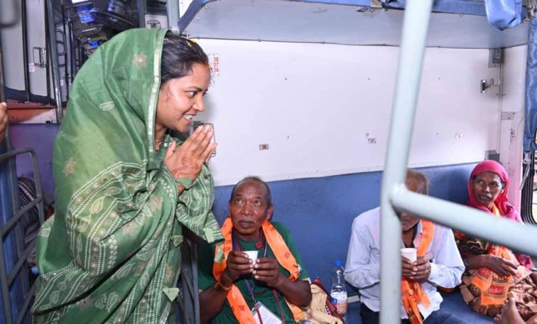 छत्तीसगढ़ सरकार की ‘रामलला दर्शन योजना’ के अंतर्गत आज अंबिकापुर रेलवे स्टेशन से श्रद्धालुओं को लेकर विशेष ट्रेन अयोध्या के लिए रवाना हुई। महिला एवं बाल विकास तथा समाज कल्याण मंत्री श्रीमती लक्ष्मी राजवाड़े ने हरी झंडी दिखाकर ट्रेन को रवाना किया और सभी श्रद्धालुओं को शुभकामनाएं दीं।