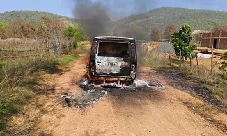 अवैध शराब भंडारण पर कार्रवाई करने पहुंची एसएसटी की धू-धूकर जली गाड़ी