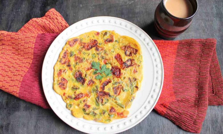 अब चीले को धीरे से पलटें और दूसरी तरफ से भी सुनहरा भूरा होने तक सेकें और दोनों तरफ से अच्छी तरह सिक जाने के बाद, चीले को तवे से उतार लें। इसी तरह बाकी घोल से भी चीले बना लें।