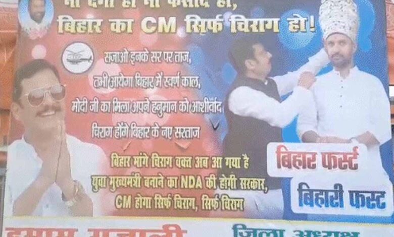 बिहार में चिराग पासवान के लिए जोरदार प्रदर्शन, पोस्टरों में उठी मुख्यमंत्री बनने की आवाज