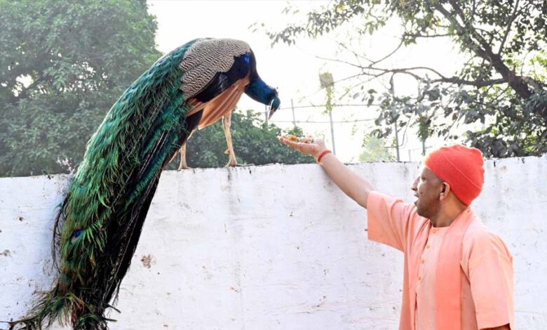 गोशाला में सीएम योगी ने चारों तरफ भ्रमण करते हुए श्यामा, गौरी, गंगा, भोला आदि नामों से गोवंश को पुकारा। उनकी आवाज इन गोवंश के लिए जानी पहचानी है। प्यार भरी पुकार सुनते ही कई गोवंश दौड़ते-कूदते उनके पास आ गए। मुख्यमंत्री योगी आदित्यनाथ ने सभी के माथे पर हाथ फेरा, उन्हें खूब दुलारा और अपने हाथों से गुड़-रोटी खिलाया। इसी क्रम में उन्होंने भोले नामक एक विशाल नंदी को स्नेह की थपकी देते हुए गुड़-रोटी खिलाया। उसके शरीर पर लगी धूल-मिट्टी को पहले अपने हाथों से साफ किया और फिर गोशाला कार्यकर्ता को निर्देशित किया कि भोले के शरीर को सूखे कपड़े से साफ कर दिया जाए। मंदिर की गोशाला में सीएम योगी ने मोर पर भी स्नेह बरसाया और उसे अपने हाथों से रोटी खिलाई।