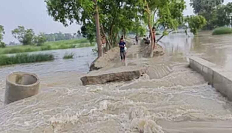 बिहार-चंपारण में गंडक नदी के तेज बहाव में निर्माणधीन पुलिया बही