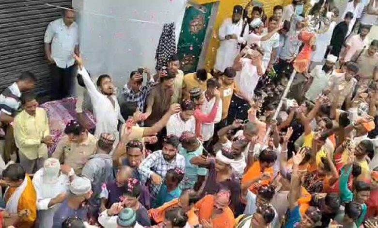 बरेली के जोगी नवादा में पिछले सप्ताह हिंदू पक्ष के लोगों ने ताजियेदारों का माला पहनाकर स्वागत किया था। अब मुस्लिम पक्ष ने सावन के पहले दिन कांवड़ियों पर फूल बरसाए हैं। दो समुदाय के लोगों ने गले मिलकर सौहार्द की मिसाल पेश की है।