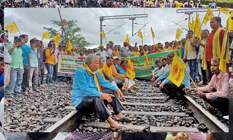 आदिवासी का दर्जा देने की अपनी पुरानी मांग को लेकर रेल रोको आंदोलन सुबह 5:50 से शुरू कर दिया है। आदिवासी कुड़मी समाज मंच के आह्वान पर सुबह से ही राज्य के कई जिलों में कुड़मी समाज के लोग रेलवे ट्रैक पर उतर आए और रेल परिचालन को पूरी तरह ठप कर दिया।