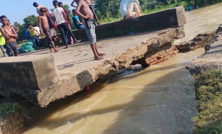 बिहार के सीतामढ़ी जिले के बथनाहा शीतलपट्टी गांव के पास सोरम नदी पर बना पुल बुधवार सुबह पानी के तेज बहाव में पूरी तरह ध्वस्त हो गया। घटना के बाद स्थानीय लोगों में दहशत का माहौल है।
