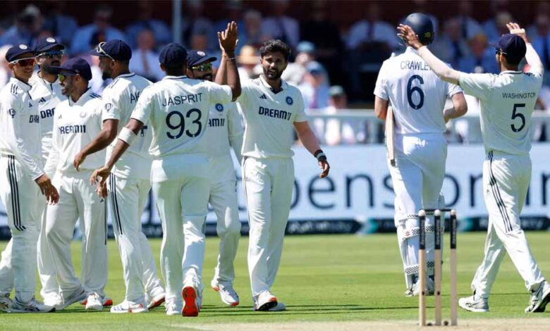 पहले बल्लेबाजी करने उतरी इंग्लैंड को जैक क्रॉउली और बेन डकेट ने अच्छी शुरुआत दिलाई। दोनों के बीच पहले विकेट के लिए 43 रन की साझेदारी हुई। बेन डकेट 40 गेंद में 23 रन बनाकर आउट हुए। जैक क्रॉउली 43 गेंद में 18 रन ही बना सके। नीतीश ने एक ही ओवर में सलामी बल्लेबाजों को आउट किया। जो रूट और ओली पोप क्रीज पर मौजूद हैं। लीड्स में इंग्लैंड ने भारत को 5 विकेट से हराया था, जबकि भारत ने बर्मिंघम में दूसरा टेस्ट 336 रनों से जीता था। इस तरह से पांच मैच की सीरीज अभी बराबरी पर है।