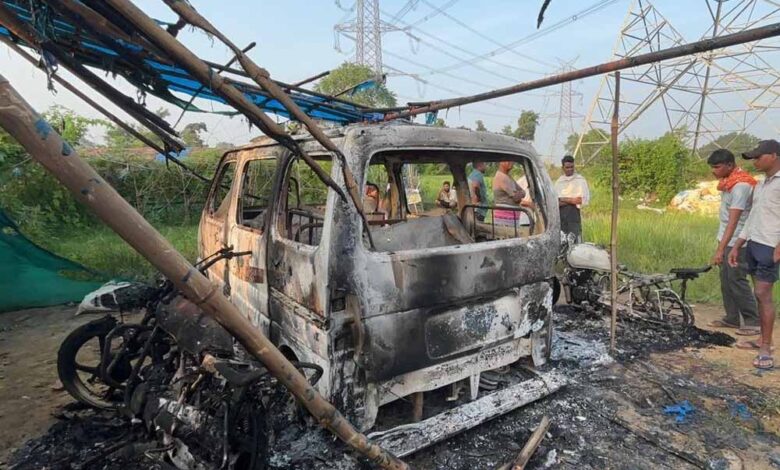 उरगा थाना क्षेत्र के ग्राम पंचायत तिलकेजा में गुरुवार-शुक्रवार की दरमियानी रात अज्ञात लोगों ने एक इको वाहन और दो मोटरसाइकिलों को आग लगा दी. वाहन मालिक नरेंद्र उरांव ने आगजनी से लाखों रुपए के नुकसान की बात कहते हुए इसे सोची-समझी साजिश का हिस्सा बताया है.