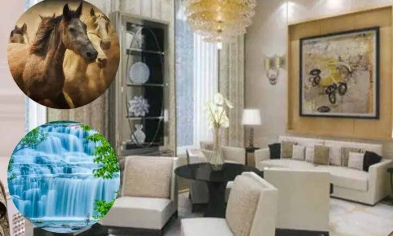बैठक: उगते हुए सूरज की तस्वीर, दौड़ते हुए सात सफेद घोड़ों की तस्वीर (तरक्की के लिए), या हरे-भरे जंगल के दृश्य लगाएं। यहां युद्ध, जंगली जानवरों, या उदासी वाली पेंटिंग्स न लगाएं।