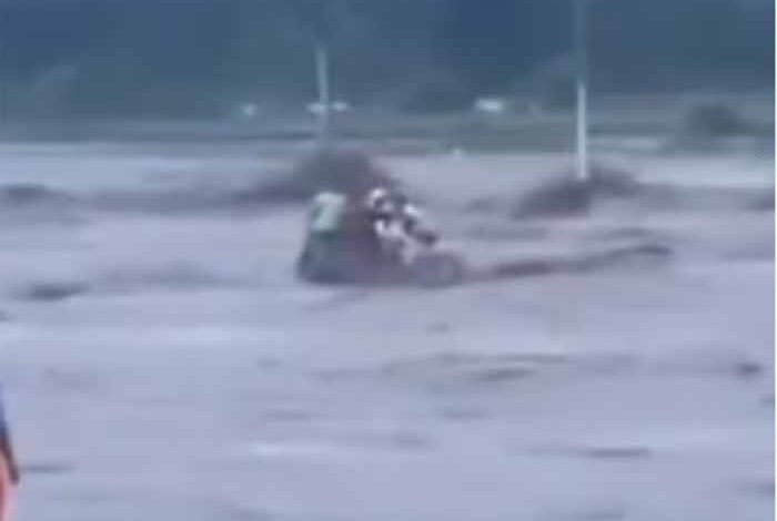 उत्तराखंड की राजधानी देहरादून में बादल फटने से भारी तबाही मची हुई है। सोमवार देर रात हुई भारी बारिश के बाग कई सड़कें टूट गईं। होटल-दुकानें बह गए जबकि कई लोग लापता बताए जा रहे हैं। इस जल सैलाब के कई खौफनाक वीडियो भी सामने आ रहे है। ऐसा ही एक वीडियो सोशल मीडिया पर काफी वायरल हो रहा है जिसमें मदद की गुहार लगाते नदीं के बीचों बीच ट्रैक्टर पर फंसे कुछ लोग देखते ही देखते नदी के तेज बहाव में बह गए और लोगों में चीख पुकार मच गई। रिपोर्ट्स के मुताबिक इस घटना में कम से कम 6 लोगों की मौत की आशंका है। यह वीडियो विकासनगर में उफनती टोंस नदी का बताया जा रहा है।