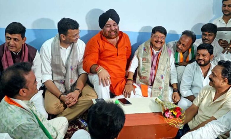 इंदौर शहर में शुक्रवार शाम राजनीति में चौंकाने वाला दृश्य देखने को मिला। नगरीय प्रशासन मंत्री कैलाश विजयवर्गीय, महापौर पुष्यमित्र भार्गव, भाजपा शहर अध्यक्ष गौरव रणदिवे और जिला अध्यक्ष चिंटू वर्मा गांधी भवन में बैठकर कांग्रेस नेताओं के साथ चाय-नाश्ता करते नजर आए।