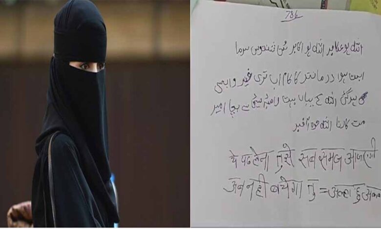 जंजीर वाला स्थित गोकुल रेसीडेंसी में विहिप के प्रांत प्रशासनिक प्रमुख संतोष शर्मा के घर पर जो चिट्ठी भेजी गई, उसमें अरबी में कई शब्द लिखे हैं। साथा ही लिखा है कि 'जल्द ही तुम्हें भी अल्लाह के पास पहुंचा दिया जाएगा।' बुर्का पहनी महिला ने गार्ड को लेटर थमाते हुए कहा, '…अब नहीं बचेगा, अल्लाह हू अकबर।' गेट पर तैनात सुरक्षा गार्ड ने बताया कि रात एक बजे के करीब बुर्का पहनी एक महिला आई और उसे लेटर दिया। गार्ड ने पूछा कि ये क्या है तो उसने कहा, 'यह पढ़ लेना, तुझे सब समझ आ जाएगा, अब नहीं बचेगा।' इसके बाद वह चली गई। हालांकि गेट पर लगे सीसीटीवी कैमरे में बुर्का पहनी महिला कैद हो गई। संतोष शर्मा ने धमकी भरी चिट्ठी मिलने के बाद तुकोगंज थाने में शिकायत दी है। थाना प्रभारी जितेंद्र यादव ने बताया कि शिकायती आवेदन के बाद एफआईआर दर्ज की गई है और सीसीटीवी फुटेज के आधार पर महिला की तलाश की जा रही है।