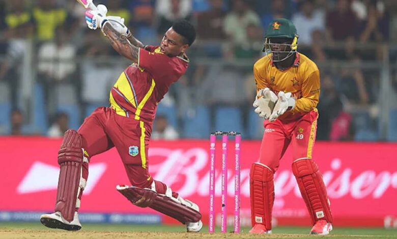 आईसीसी मेन्स टी20 वर्ल्ड कप का 44वां मैच सोमवार को जिम्बाब्वे और वेस्टइंडीज के बीच खेला गया. इस मैच में वेस्टइंडीज को 107 रनों से जीत मिली है. इस मुकाबले में टॉस जीतकर जिम्बाब्वे ने पहले गेंदबाजी का फैसला लिया था. वेस्टइंडीज के बल्लेबाजों ने तूफानी बैटिंग की और 254 रन ठोक डाले. इसके जवाब में उतरी जिम्बाब्वे की टीम महज 147 रन ही बना सकी और 18वें ओवर में ऑलआउट हो गई. वेस्टइंडीज ने इस विश्वकप का सबसे बड़ा स्कोर बनाया था.