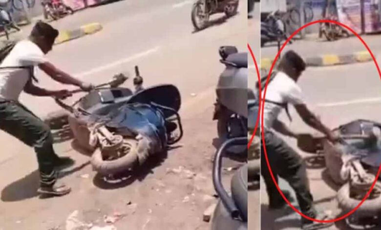 युवक की स्कूटी में फिर परेशानी आई तो वह शोरूम में शिकायत लेकर पहुंचा। इसके बाद शोरूम का रवैया फिर से वही रहा। इसी बात को लेकर वह भड़क गया और हथौड़े मारकर शोरूम के बाहर अपनी स्कूटी तोड़ दी है। वहां से गुजर रहे लोगों ने इसका वीडियो रेकॉर्ड कर लिया और सोशल मीडिया पर वायरल कर दिया।